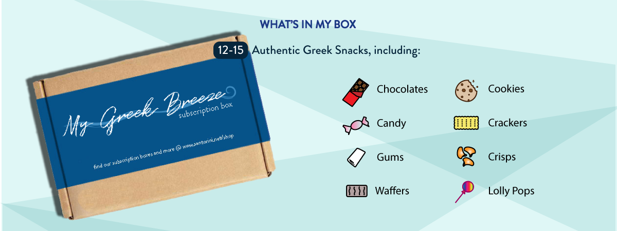 Enjoy the most popular snacks of Greece for kids and adults!Every month, your Greek snack box ships worldwide from Santorini island, straight to your door!