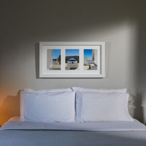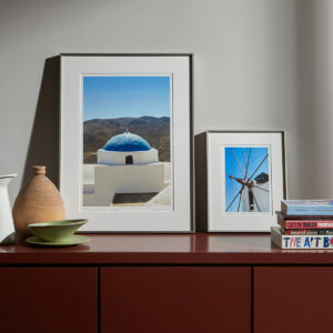 “Dome” brings the charm of the Greek island to your home. The enchanting church dome, carved in the Cycladic white, exudes the simplicity and elegance of traditional architecture. The composition of the photographic frame is enhanced by the vivid blue of the Aegean sky, offering an unparalleled sense of tranquility and freedom. A true artistic experience, offering a journey into Aegean magic.