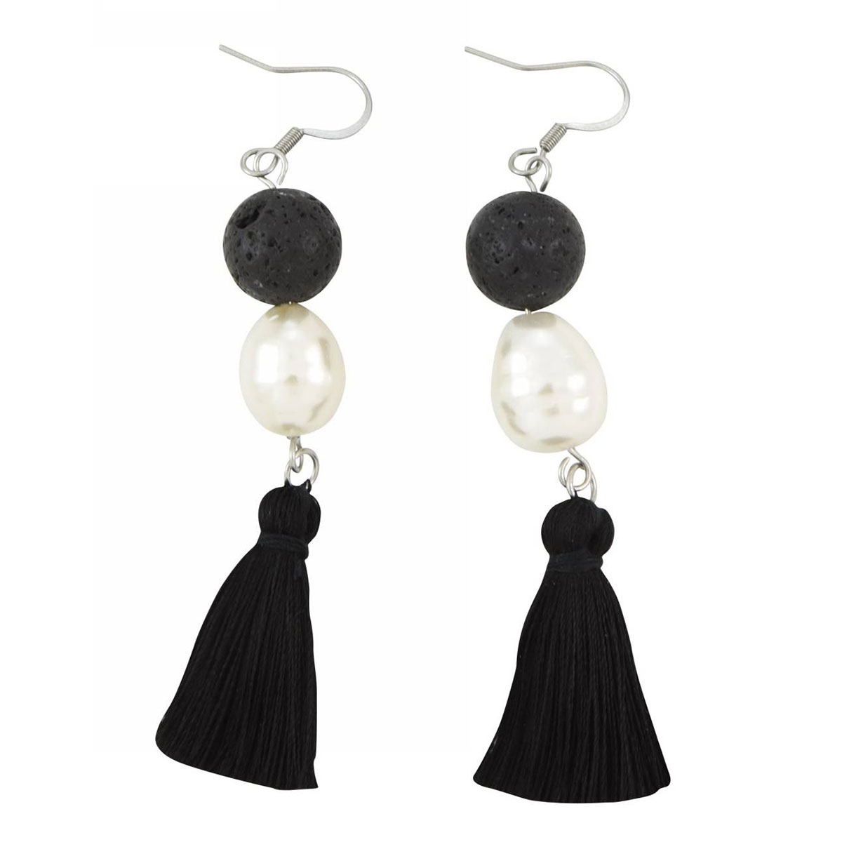Black Lava and Tassel Earrings