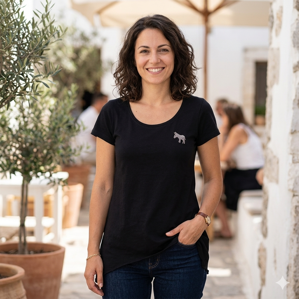 Donkey logo, longer back, women’s t-shirt, black