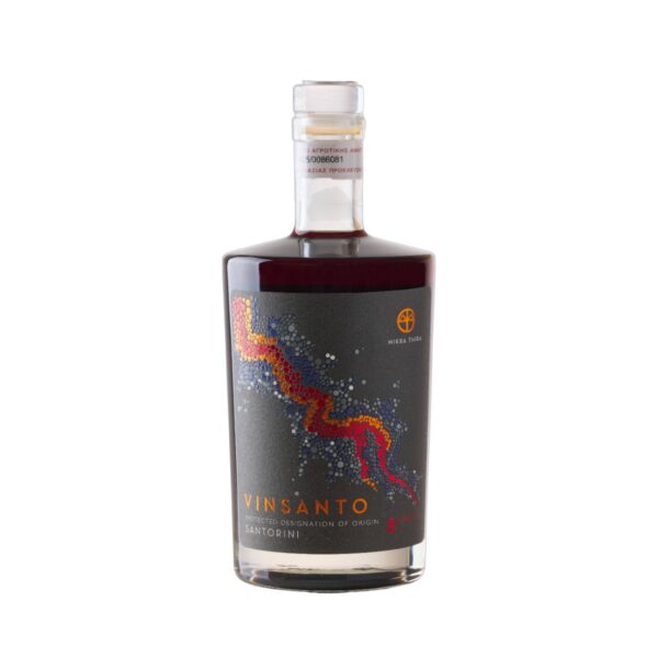 A rare and precious sweet wine from the volcanic vineyards of Thirasia and Santorini, Mikra Thira Vinsanto 8 Years Old is crafted from sun-dried Assyrtiko and Aidani grapes. Aged for eight years in oak barrels, it reveals deep amber hues and complex aromas of dried fruits, honey, caramel, and spices. Rich, velvety, and perfectly balanced by its vibrant acidity, it pairs beautifully with desserts, dried fruits, nuts, or simply enjoyed on its own as a wine for quiet moments of reflection.